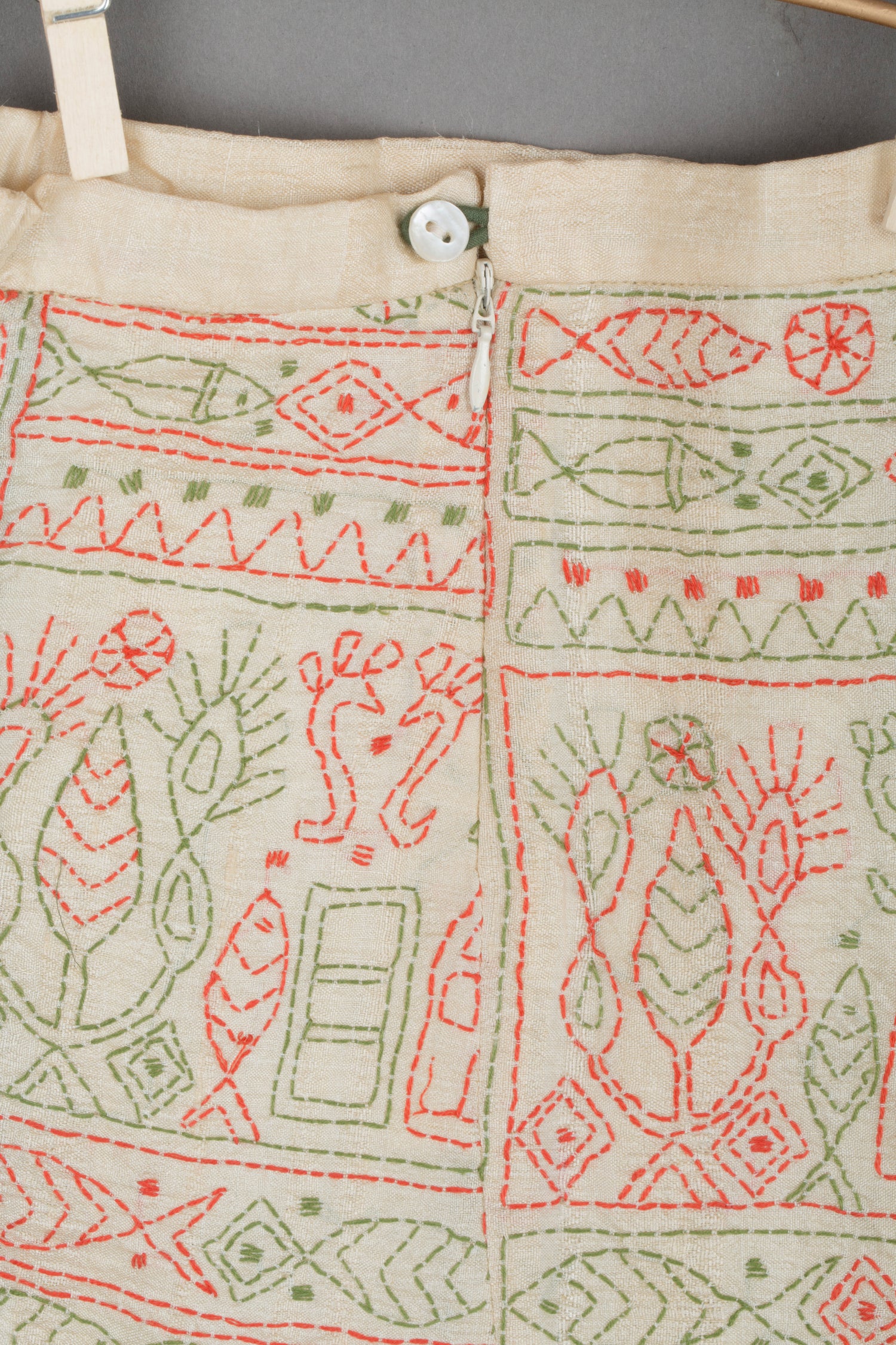 Hand embroidery runs across the panels in tribal-inspired motifs, echoing centuries of daily life drawings. They look like illustrations straight out of a storybook—figures and shapes your girl can try to copy in her own sketchpad. It’s clothing that doesn’t just decorate, but teaches, sparking creativity every time she wears it.